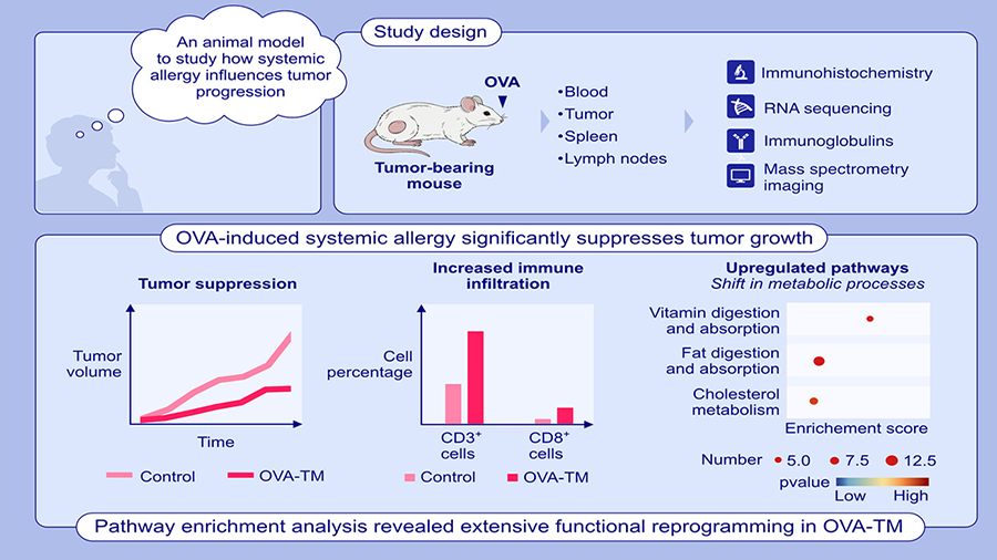 近日,药物所靳洪涛研究员、贺玖明研究员团队在过敏与肿瘤免疫交叉研究(AllergoOncology)领域取得了新进展,成功构建了食物过敏介导的全身免疫调控肿瘤模型,揭示系统性过敏反应通过免疫激活-代谢...