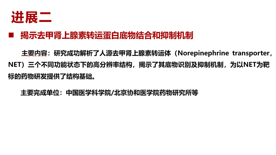 为贯彻落实“科技三会”精神,引导我国医学科技创新的发展方向,4月20日,中国医学科学院在中国医学发展大会上发布了《中国2024年度重要医学进展》。药物所吴惊香研究员领衔的《揭示去甲肾上腺素转运蛋白底物结合和抑制机制》入选。