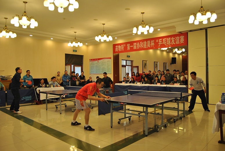 本次比赛现场抽签,采用主客场循环分组对抗形式,各队都派出了乒球好手,一决高下。场上选手各展所能,斗智斗勇,场下观众目不转睛,精神高度集中。漂亮的扣杀,严密的防守,精彩激烈的对决场面,使现场观众不时爆发出热烈掌声和欢呼声。比赛持续了一整天,所工会主席陈若芸宣布比赛结果,药物所工会和科莱博分工会分获团体第一名和第二名,协和建昊分工会主席苏太山为获奖队伍颁发奖杯。
