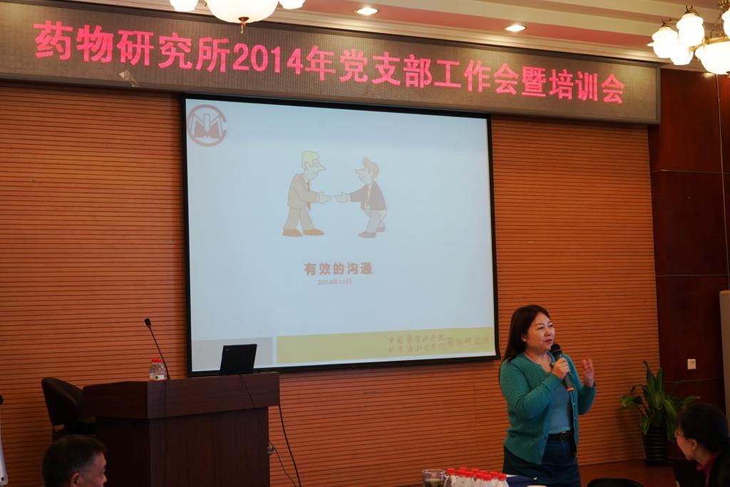 11月3日,药物所召开2014年党支部工作会暨培训会,党支部书记、委员50余人参加,会议由党委书记刘煜主持。![]()