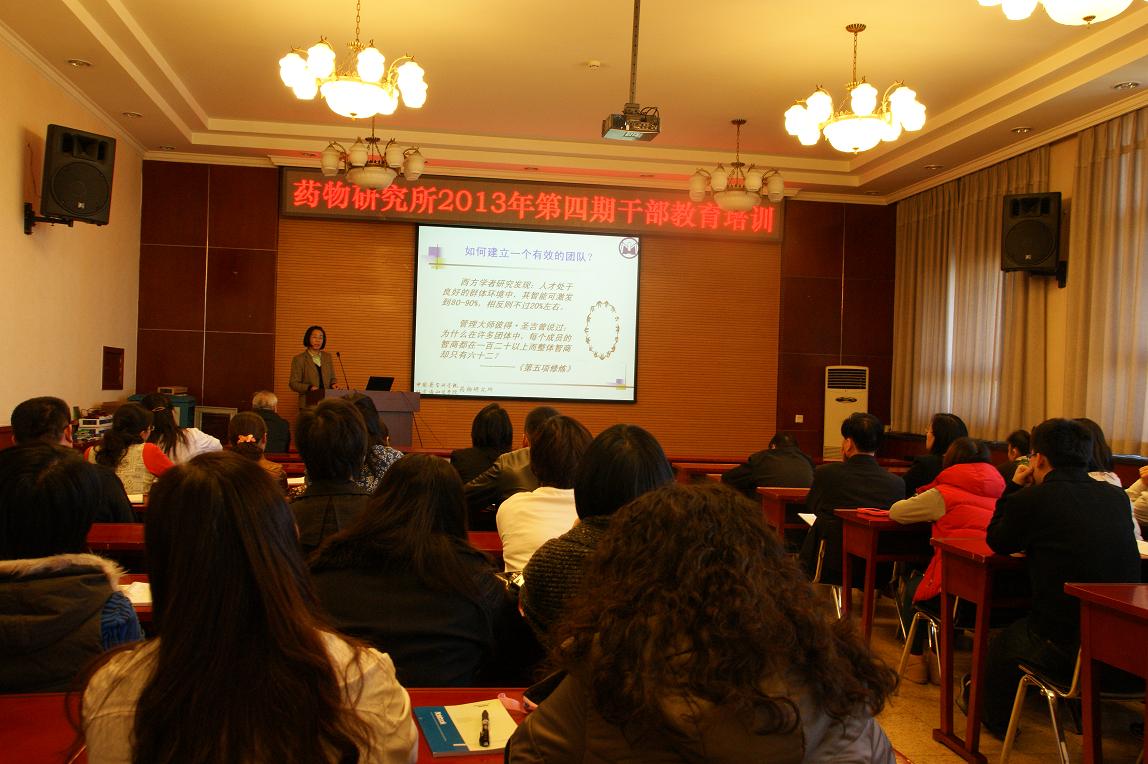 10月 29日,药物所以“团队角色和领导艺术”为主题组织开展了 2013年第四期管理干部教育培训,副所长陈晓光担任主讲。职能部门管理人员40余人参加,培训由党委书记刘煜主持。