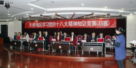 为充分认识党的十八大的重要意义,深刻理解十八大报告的精神实质,天桥街道于 2013 年1月29日 - 1 月31 日 举办了“天桥地区学习党的十八大精神知识竞赛”活动。我所作为辖区单位,根据所党委统一部署,由所团委负责选派代表组队参加了活动,并获优秀组织奖。