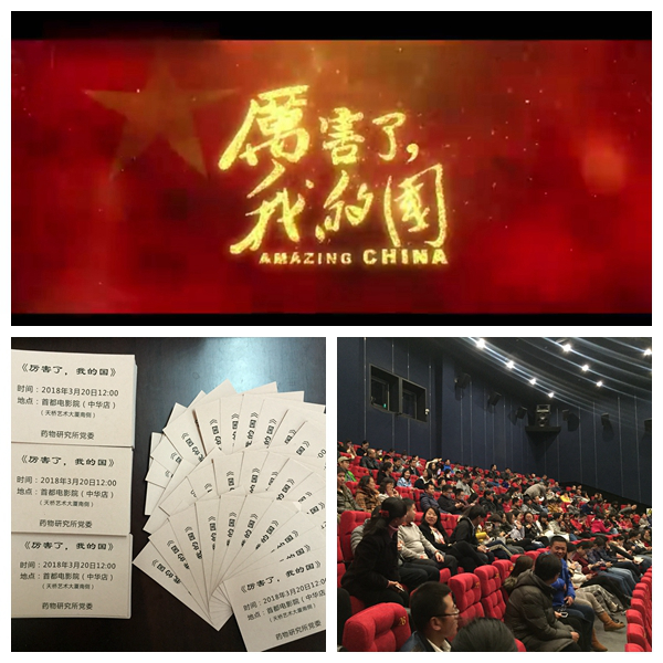 为深入学习贯彻党的十九大精神,激发广大党员、职工的爱国主义热情,在全国“两会”胜利召开之际,药物所党委组织党员、入党积极分子、民主党派代表300余人观看大型纪录电影《厉害了,我的国》,鼓舞士气,汇聚力量。