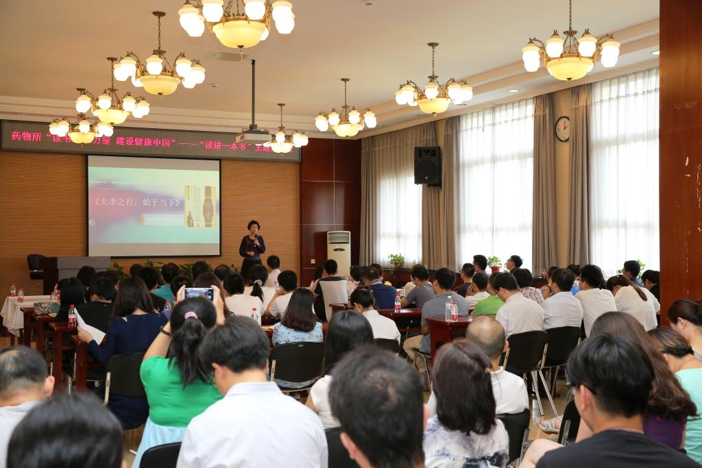 建设健康中国”——“读讲一本书”主题演讲会,目的是为大家搭建一个相互交流、分享感悟的学习平台,进一步引导广大党员干部、群众真正把读书当成一种生活态度、一种工作责任、一种精神追求,养成良好的“爱读书、读好书、好读书”的习惯。希望广大党员干部、群众通过坚持读书学习不断提升个人修养,最终转化为提高能力、做好本职工作的不竭动力,为我所乃至国家的医药卫生事业做出应有的贡献!