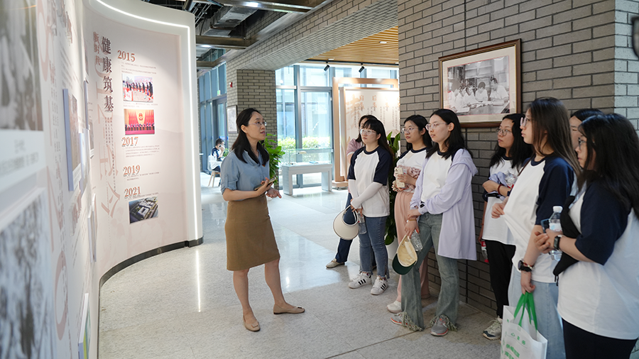 在志愿者的引导下,师生依次参观了北京协和药厂有限公司、药物所所史馆以及智慧党建园地等。在北京协和药厂有限公司,师生们了解到我国原创新药的发展和壮大的历程,深刻感受到药物所在科研教育、创新成果转化、高端人才培养融合发展中形成的“协和特色”。在所史馆,党委办公室张莉主任声情并茂的讲解,让师生们感受了老一辈科学家献身新药研发、矢志不渝的科研精神,以及新时代下,药物所持续深化科技创新、产业创新,加快新质生产力发展布局,为增强人民健康不断进取。在智慧党建园地体验了VR技术带来的沉浸式党建课堂,一代代先烈为国为党的奋斗历程激励着同学们努力成长为党和人民需要的有用之才。