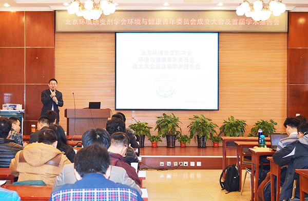 2015年12月26日,北京环境诱变剂学会环境与健康青年委员会成立大会及首届学术报告会在药物所五楼报告厅召开。药物所新药安全评价中心主任、北京环境诱变剂学会理事长王爱平、北京市科协社团服务中心王松涛参加会议并致辞。