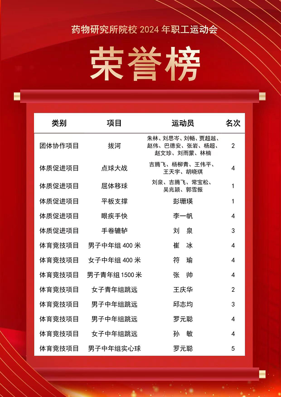 经过激烈的角逐,药物所位列积分榜第四,荣获“最佳组织奖”的优异成绩,充分展现了药物所凝心聚力、昂扬向上的精神风貌。