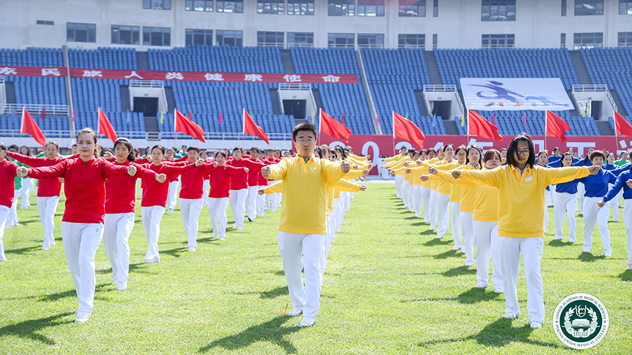 激昂的号角声响起,运动会在广播操和太极拳表演中拉开序幕。广播操表演整齐划一、朝气蓬勃;太极拳表演刚柔并济、收放自如,充分展现了中华传统文化的魅力与精髓。