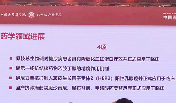 2021年4月17-18日,以“擘画新时代国家医学创新体系及核心基地建设蓝图”为主题的首届中国医学发展大会在北京召开。大会发布了《中国21世纪重要医学成就》,并同期发布《中国2020年度医学重要进展》。药物所刘玉玲研究员和申竹芳研究员领衔的《桑枝总生物碱对糖尿病患者具有降糖化血红蛋白疗效并正式应用于临床》入选《中国2020年度医学重要进展》,为药学领域4项进展之一。药学领域《中国2020年度重要医学进展》由王锐院士发布。