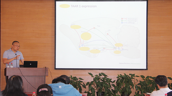 李俊旭教授长期致力于精神药理学、行为药理学和药物滥用防治等方面的研究。他首先介绍了药物成瘾与滥用在全球范围内的严峻形势以及对预防和治疗该症状的有效治疗药物的迫切需求,并根据其领导的团队在该领域的研究成果,介绍了TAAR1这一受体在药物成瘾治疗方面发挥的重要作用,TAAR1激动剂RO5166017和RO5263397在整体动物水平表现出的药效证明这一受体很有可能成为治疗药物成瘾的靶点。