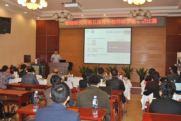 参赛教师分别来自合成药物化学研究室、天然药物化学研究室、药理学研究室、国家药物筛选中心、生物合成研究室、药物晶型研究中心、药物分析研究室和药物制剂研究室。他们精心准备了教学方案和15分钟授课幻灯片,以细致的讲解、丰富的肢体语言,声情并茂地向与会人员做了授课展示。