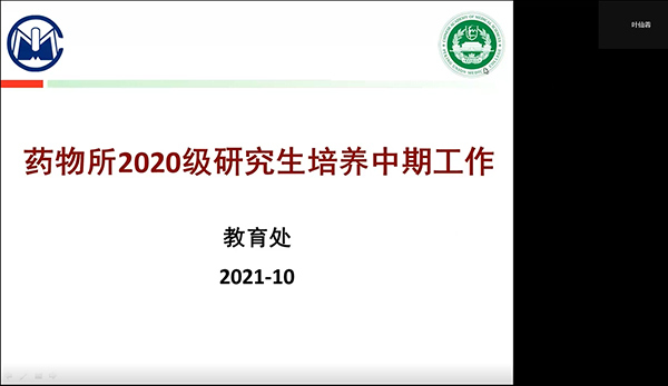 为进一步加强研究生培养过程管理,继续落实研究生中期考核制度和分流机制,保证研究生培养质量,2021年10月25日上午,药物所教育处通过腾讯会议在线上成功举办“2020级研究生开题及中期考核启动会”。教育处老师和2020级全体研究生,160余人参加了本次会议。会议由教育处叶仙蓉处长主持。