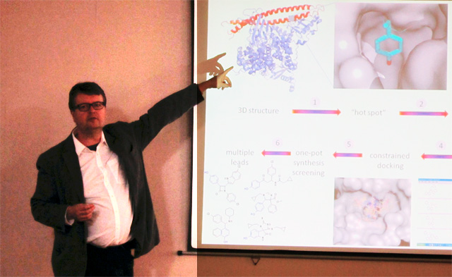 2012 年2月29日下午, 格罗宁根大学讲习教授和匹兹堡大学药学院教授Alexander Dömling 在药物所西楼第二会议室作了题为“ Instant Chemistry and ANCHOR.QUERY SOFTWARE for the rapid discovery of mdm2 and mdm4 antagonists ”的学术报告。报告会由方唯硕研究员主持。