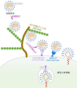 谭忠平课题组和崔胜课题组从2020年初在这个方向上进行探索。通过利用糖芯片、表面等离子共振和等温滴定量热等技术系统地比较三种病毒的刺突蛋白(S蛋白)及其亚基和结构域与大量聚糖和寡糖分子结合的不同,他们发现,这些病毒与流感病毒不同,它们都不能结合唾液酸化的寡糖,但却都能够结合硫酸乙酰肝素,而且结合的强弱与肝素上硫酸根基团的多少直接相关。更为重要的是,研究发现,一种低分子肝素类药物“磺达肝素”也可以与这三种病毒产生类似结合。研究结果说明,三种病毒在感染初期,很可能首先通过硫酸乙酰肝素附着在人体细胞上。因此,抑制这种结合,可能有利于对这些病毒进行更加有效的控制,而磺达肝素等低分子肝素或其类似物,则可能作为此类抑制剂开发的一个起点。