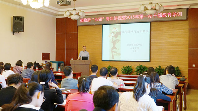 在纪念“五四”运动96周年之际,药物所组织开展“五四”青年讲座暨干部教育培训活动,特别邀请北京协和医学院人文学院王勇副教授以“协和精神与协和精英”为主题作精彩报告。全所党支部书记委员,行政管理干部和团员青年近90人参加活动。活动由党委书记陈晓光主持。