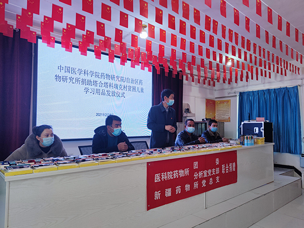 进一步支持南疆边远山区的基础教育事业,积极响应总书记的嘱托和号召,履行社会帮扶责任,2021年1月19日,药物所团委、药物所分析室党支部与新疆药物所党总支积极联系,共同向和田地区皮山县克里阳乡塔合塔科瑞克村的中小学生捐助了一批学习用品和图书。