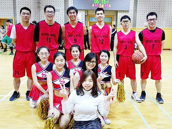 参赛的篮球队员从繁重的科研工作中抽出时间进行赛前训练,演练队形,讨论战术。球场上队员们挥洒汗水,矫健的身姿更是频频引发观众的尖叫声。在全体队员的共同努力下,从小组循环赛中脱颖而出,进入八强。