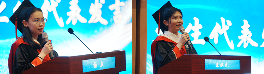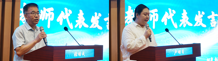 教师代表天然药物化学研究室张培成研究员和教育处卢明月老师以自己的亲身经历和感悟,嘱托同学们以真诚为根基,以实干为阶梯,在追梦的路上坚定前行。