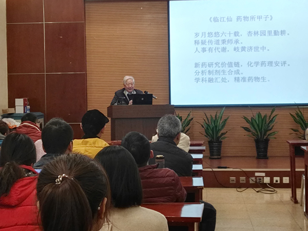 接着,郭宗儒老师带大家重温了七段岁月往事,讲述了药物所在N-甲酰溶肉瘤素、联苯双酯、丁苯酞、鱼腥草素、维甲酸、艾瑞昔布等研发中的奇妙经历,有成功,亦有失败。最后,通过与郭宗儒老师互动交流,同学们感悟良多,受益匪浅。