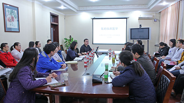 薛连璧主任首先针对氧的生理作用、缺氧与疾病的关系、血氧的临床诊断与监测方法、氧化应激反应与临床氧中毒、大鼠病理状态下循环状况的改变等进行了全面系统地介绍。他指出,高压氧医学主要研究机体在高气压的特殊环境下吸入纯氧时,组织器官所产生的各种反应的机理及对机体各种生理功能和病理变化的影响,在许多疾病的治疗中发挥重要作用,尤其对厌氧菌感染、一氧化碳中毒、气栓症等疾病有特殊疗效。在脑外伤、脑血管疾病、慢性难愈性溃疡、断指(趾)再植术后血运不良等疾病的综合治疗中有不可替代的治疗作用。此外,薛连璧主任还结合自身数十年的临床治疗经验就缺氧性脑组织损伤、高压氧治疗的基本原理、临床适应症和主要器械设备等做了详细讲解。