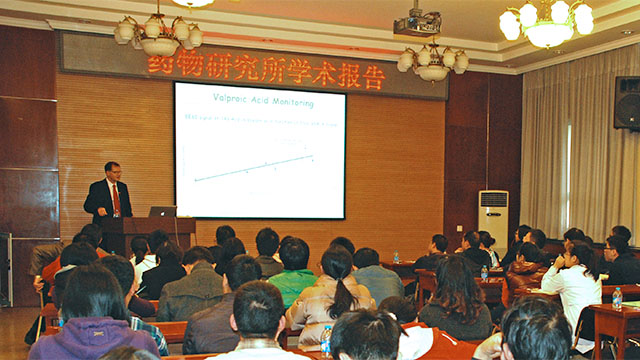 Renato Zenobi教授主要从事质谱分析和光谱分析领域的基础研究和应用开发工作,在国际生命科学和质谱研究领域具有较大影响,是瑞士分析化学首席教授。在报告中,Zenobi教授主要介绍了质谱分析新技术在代谢物研究中的进展及取得的成果。他将超高灵敏度的微阵列MALDI质谱技术用于单细胞代谢组学研究,该技术可实现酵母细胞单细胞水平的小分子代谢物分析,可考察及了解细胞间的生物差异性和代谢物间的相关性,从而获得细胞水平生物化学过程的代谢网络。此外,Zenobi教授课题组利用二次离子电离质谱技术实现了对人体呼气快速、实时、在线、无损分析,该技术在医疗诊断中有可能成为血样、尿样等常规检测手段的补充,并在个体化医疗、兴奋剂检测、法医鉴定等领域显现出较强的应用潜力。