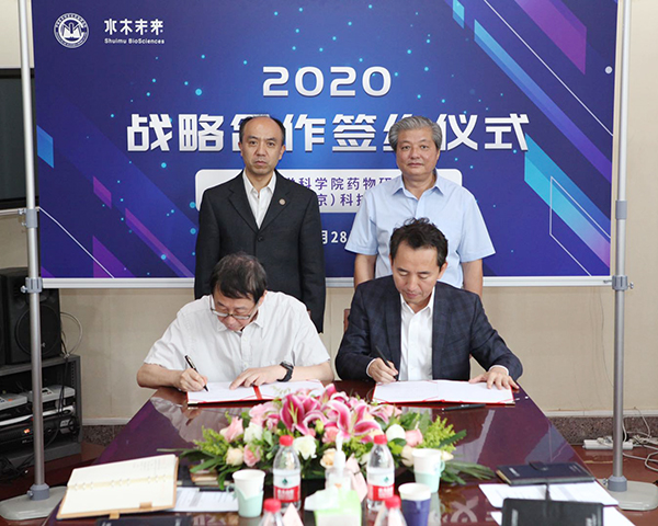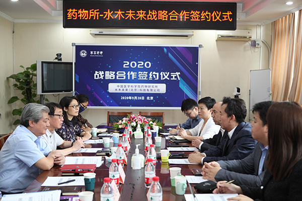 2020年9月28日,药物所与水木未来(北京)科技有限公司(以下简称“水木未来”)签署战略合作协议。清华大学生命科学学院院长兼水木未来首席科学家王宏伟、水木未来CEO郭春龙、药物所所长蒋建东、副所长庾石山及双方相关人员参加了签约仪式,会议由庾石山副所长主持。