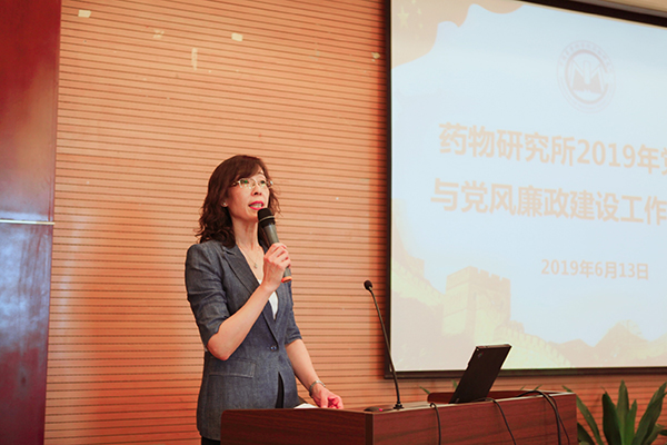 2019年6月13日,中国医学科学院药物研究所2019年度党建与党风廉政建设工作会在五楼会议室召开。会议重点部署了药物所“不忘初心,牢记使命”主题教育活动各项工作。所领导班子成员,党委委员、纪委委员,工会主席、团委书记,各党支部委员会成员,部门、科室、企业正副负责人,党外人士特邀代表100余人参加了会议。