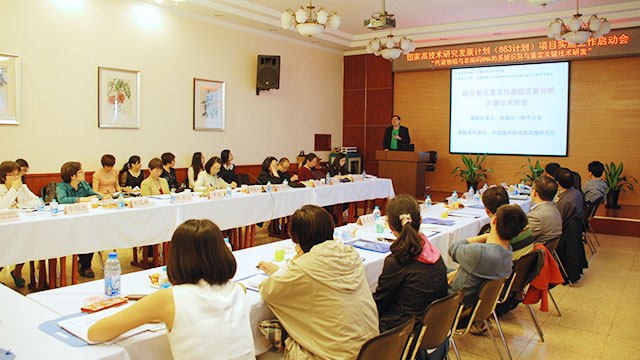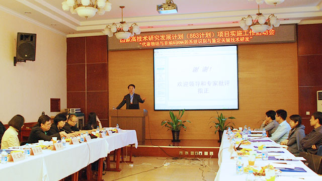 中国医学科学院科技管理处处长张学为启动会致辞。再帕尔·阿不力孜研究员、 李霞 教授、张治华研究员和郑煜芳副教授作为课题负责人或科研骨干,分别就该项目4个课题的实施方案和研究计划进行了详细汇报。中国医学科学院北京协和医学院副院校长詹启敏院士作总结发言,并就本项目的研发定位、组织管理等提出了若干建议。詹启敏院士强调,“代谢物组”和“非编码 RNA”两个方向的研究均属于前沿热点研究领域,本项目的关键技术研发不仅要体现原创性、优越性,还应强调实用性,既要立足于国际发展前沿,也要符合国家对于生物医药的需求,研发成果要体现实际临床应用价值;其次,在进行项目研发和管理的过程中,不仅要严格遵照国家863计划项目管理办法和经费使用管理办法的要求,还要重视各课题承担单位之间的沟通协调,建立合理、高效的组织管理运行机制,以及数据信息库、化合物实体库等资源的共享机制。