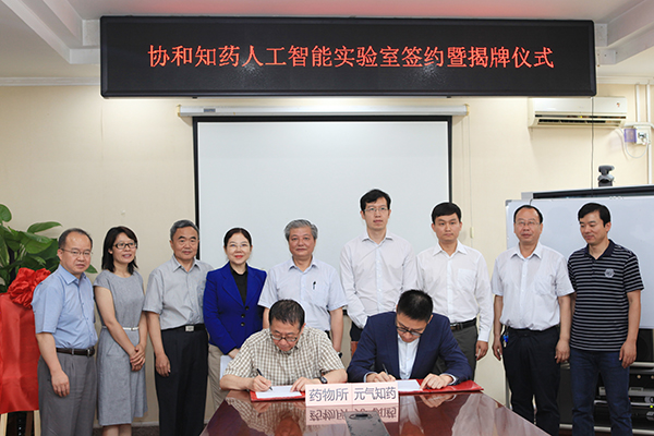 2019年6月5日,“协和知药人工智能实验室”签约仪式在药物所举行。药物所所长蒋建东与元气知药董事长唐彬森共同签约并为实验室揭牌。