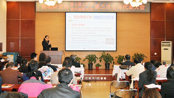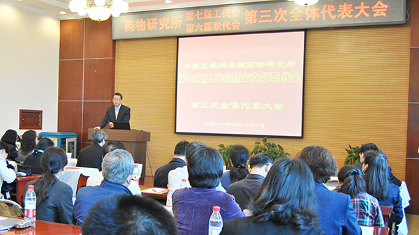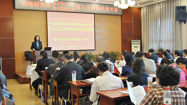 2017年4月21日,药物研究所组织召开第七届工代会暨第六届职代会第三次全体代表大会。所长蒋建东、党委书记陈晓光及65名“双代会”代表参加了本次大会,会议邀请药物研究所分工会主席、两院院士、人大代表、政协委员、民主党派负责人、科研/行政科室主任、支部书记等列席本次代表大会。会议由工会主席吕扬主持。