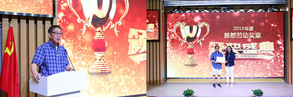 会上,工会主席吕扬为蒋建东所长颁发了首都劳动奖章。蒋建东所长在获奖发言中讲到,“作为众多职工中的一员做了一些工作,能获得首都劳动奖章是一种意外之喜。药物所还有大量的优秀职工、先进人物待被发掘,希望大家再接再厉,把产学研基地当成新长征的起点,做出新成绩”。