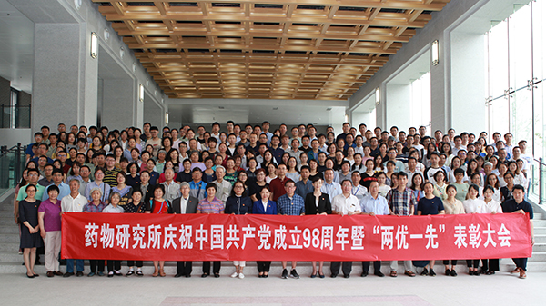 会上,首次发布6月28日迎“七一”主题党日活动视频《我和我的祖国》,片中对祖国衷情的歌唱温馨感人。王珂同志宣读了国家卫生健康委、院校“两优一先”获表彰名单,表彰了药物所 “两优一先”获奖人员。获奖代表韩锐教授、于德泉院士所在支部分别派出代表讲述了两位老专家的历历往事。先进基层党组织代表合成开发党支部分享了支部建设的优秀经验。