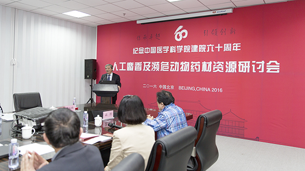 为进一步推动我国珍稀濒危动物药材代用品的研制,保证中医用药体系的完整性和有效的传承,2016年10月20日,由中国医学科学院药物研究所主办、北京联馨药业有限公司承办的“人工麝香及濒危动物药材资源研讨会”在药物所人工麝香产业化基地隆重召开。