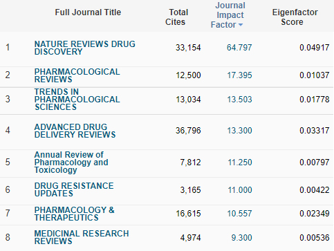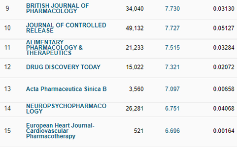Pharmacology & Pharmacy学科类别2019年影响因子Top15