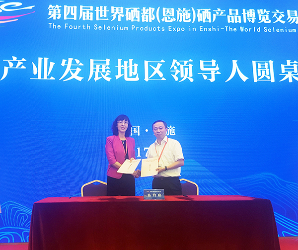 2017年9月26日,第四届世界硒都(恩施)硒产品博览交易会在湖北省恩施土家族苗族自治州(以下简称恩施州)隆重召开。药物研究所党委副书记、纪委书记冯敬出席大会,并参加了中国硒产业发展地区领导人圆桌会议,代表药物所与恩施州人民政府签署了“中药资源与大健康发展战略合作协议”。