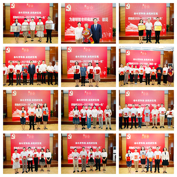 为庆祝中国共产党成立100周年,表彰“两优一先”荣誉获得者,2021年7月21日,药物所召开2020-2021年度“两优一先”表彰大会。“光荣在党五十年”纪念章获得者代表、“两优一先”获得者、所领导班子、党委委员、纪委委员、工会主席、团委书记、党支部书记以及新发展党员、民主党派负责人出席了会议。党委副书记、纪委书记冯敬主持了会议。