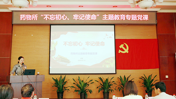 在庆祝中国共产党建党98周年之际,结合“不忘初心、牢记使命”主题教育,药物所7月15日由党委副书记王珂讲授专题党课。院校“不忘初心、牢记使命”主题教育第三指导组,所领导班子成员,党委委员,纪委委员,工会正副主席,团委正副书记,各党支部支委会成员,部门、科室、企业正副负责人,党员代表,特邀党外代表近180人参加了党课学习。专题党课由党委副书记、纪委书记冯敬主持。