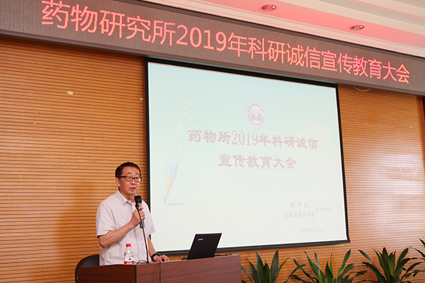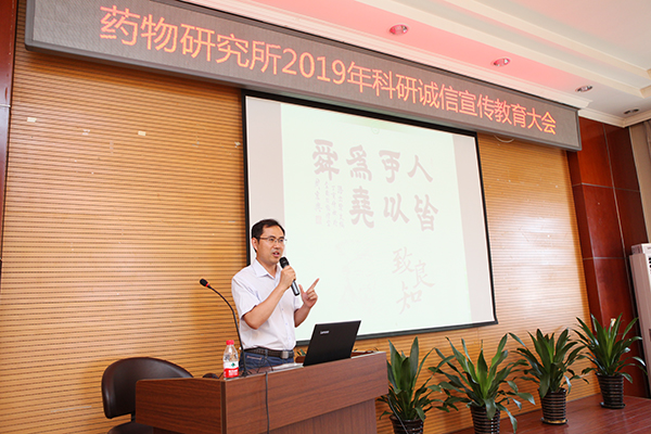 为贯彻落实中办国办印发的《关于进一步弘扬科学家精神加强作风和学风建设的意见》,加强药物所科研诚信建设,营造风清气正、公平公正的良好科研风气,2019年6月20日,所科研处、纪检监察办公室联合举办了“药物所2019年科研诚信宣传教育大会”,药物所副研及以上科研人员参会。