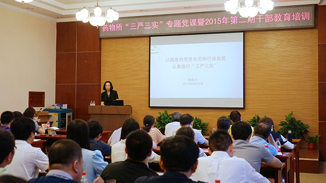 根据中央和院校党委关于开展“三严三实”专题教育的部署要求,按照药物所党委“三严三实”专题教育工作的总体安排,6月26日下午,药物所举办“三严三实”专题党课,党委书记陈晓光作了《以高度的思想自觉和行动自觉 认真践行“三严三实”》专题教育党课。所领导班子成员,各党、团支部书记及委员,各部门、企业正副负责人70余人参加学习。