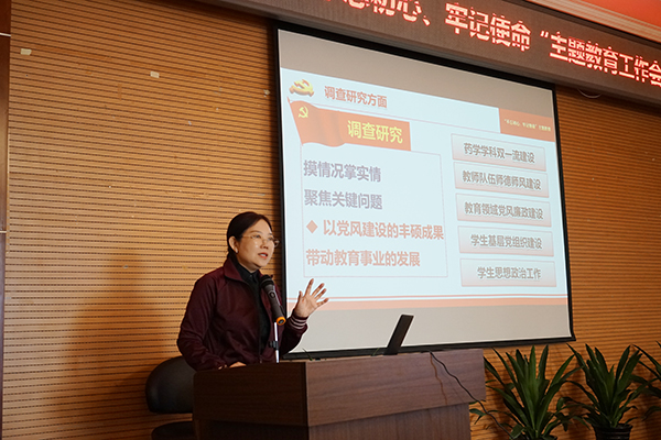 党委副书记、副所长王珂同志传达了院校第二批主题教育实施方案精神并对药物所的相关工作进行部署。首先,总结了药物所第一批主题教育的过程和取得的成绩;其次,对第二批主题教育的总体要求和具体目标进行了解读,指出北京协和医学院作为国家卫生健康委唯一的直属高等院校,要在巩固第一批主题教育成果的基础上,以教育工作为核心,以教师党员和学生党员为主要对象,继续开展第二批主题教育;最后,对药物所开展第二批主题教育的主要任务、工作原则及工作安排进行了部署,强调要深入学习贯彻习近平新时代中国特色社会主义思想和习近平总书记关于教育工作的重要讲话精神和指示精神,通过读原著学原文、调研师德师风建设、学生思政建设等方面的问题,以自我检视、广泛听取意见等多种方式,引导教师自尊自律自强,做学生敬仰爱戴的品德之师、做社会道德的示范者、诚信风尚的引领者、公平正义的维护者,以党风建设的丰硕成果带动教育事业的发展。