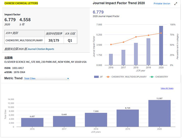 Chinese Chemical Letters 2020年影响因子为6.779